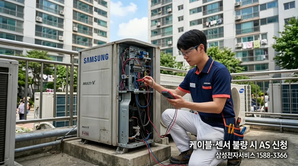 실내기-실외기 연결 케이블 노후화, 실내 온도 센서 단선이 반복 오류의 주요 원인이에요.