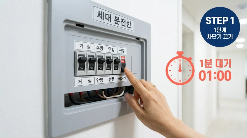 지금 바로 분전반 차단기 한 번 내렸다 올려보세요. 5분 안에 해결될 수 있어요.