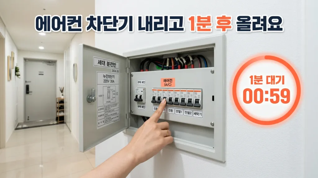 📌 핵심: 차단기 1분 리셋이 먼저 — 반복 에러면 A/S 접수로 진행하세요