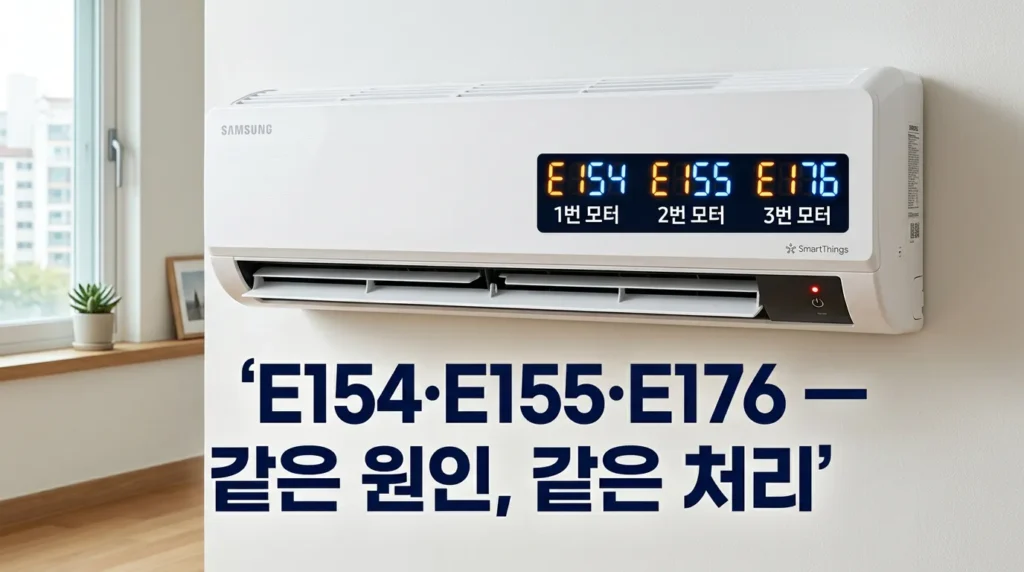✅ E154는 실내기 팬(송풍팬) 1번 모터 에러예요. E155는 2번, E176은 3번 모터 에러예요.
