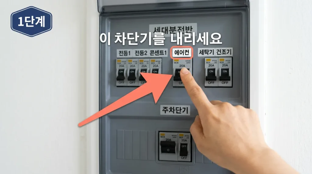 📌 요약: 차단기 내리기 → 1분 대기 → 올리기 → 30초 대기 → 에어컨 켜기. 이 순서가 기본이에요.
